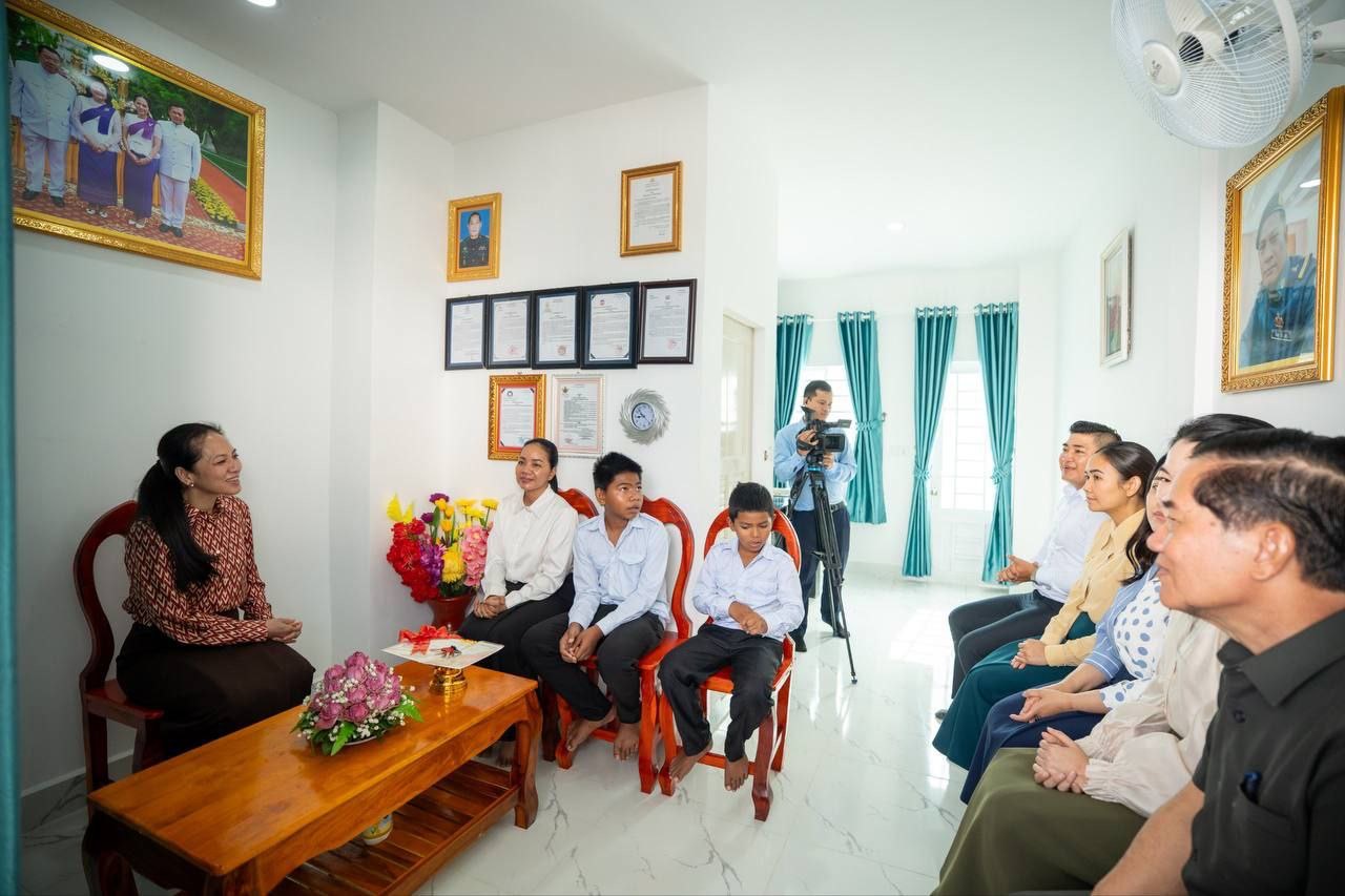 លោកជំទាវបណ្ឌិត ពេជ ចន្ទមុន្នី ហ៊ុនម៉ាណែត អញ្ជើញជាវត្តមាន ប្រគល់ផ្ទះថ្មី ចំនួន ៣ខ្នង ជូនក្រុមគ្រួសាររបស់វីរកងទ័ពពលី ដែលក្នុងនោះផ្ទះ ២ខ្នង ស្ថិតនៅក្រុងតាខ្មៅ ខេត្តកណ្ដាល និងផ្ទះ ១ខ្នងទៀត ស្ថិតនៅខណ្ឌព្រែកព្នៅ រាជធានីភ្នំពេញ ។