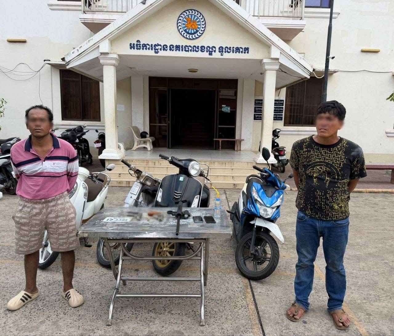 ឃាត់ខ្លួនជនសង្ស័យ០២នាក់ ពាក់ព័ន្ធករណីលួចយកម៉ូតូ និងកាន់កាប់ ឬដឹកជញ្ជូនអាវុធដោយគ្មានការអនុញ្ញាត