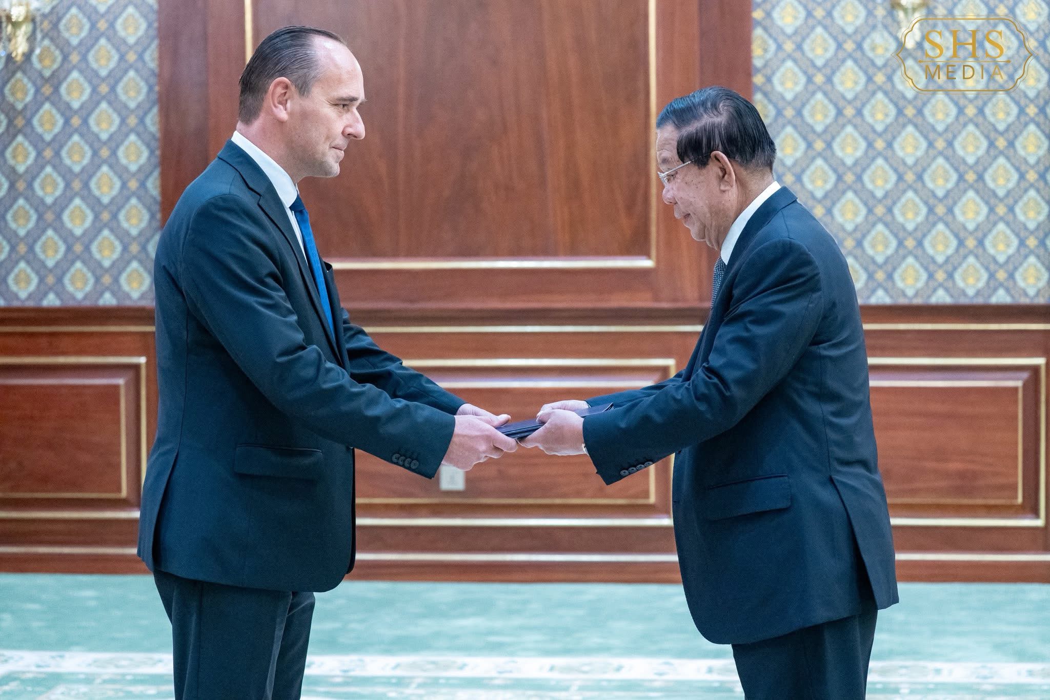 សម្តេចតេជោ ហ៊ុន សែន អនុញ្ញាតឱ្យ ឯកឧត្តម អេឡិចសិនដឺ មីខូវស៊ិន (Alexander Micovčin) ឯកអគ្គរដ្ឋទូតថ្មីនៃសាធារណរដ្ឋស្លូវ៉ាគី ប្រចាំនៅកម្ពុជា ចូលជួប និងប្រគល់សារតាំង
