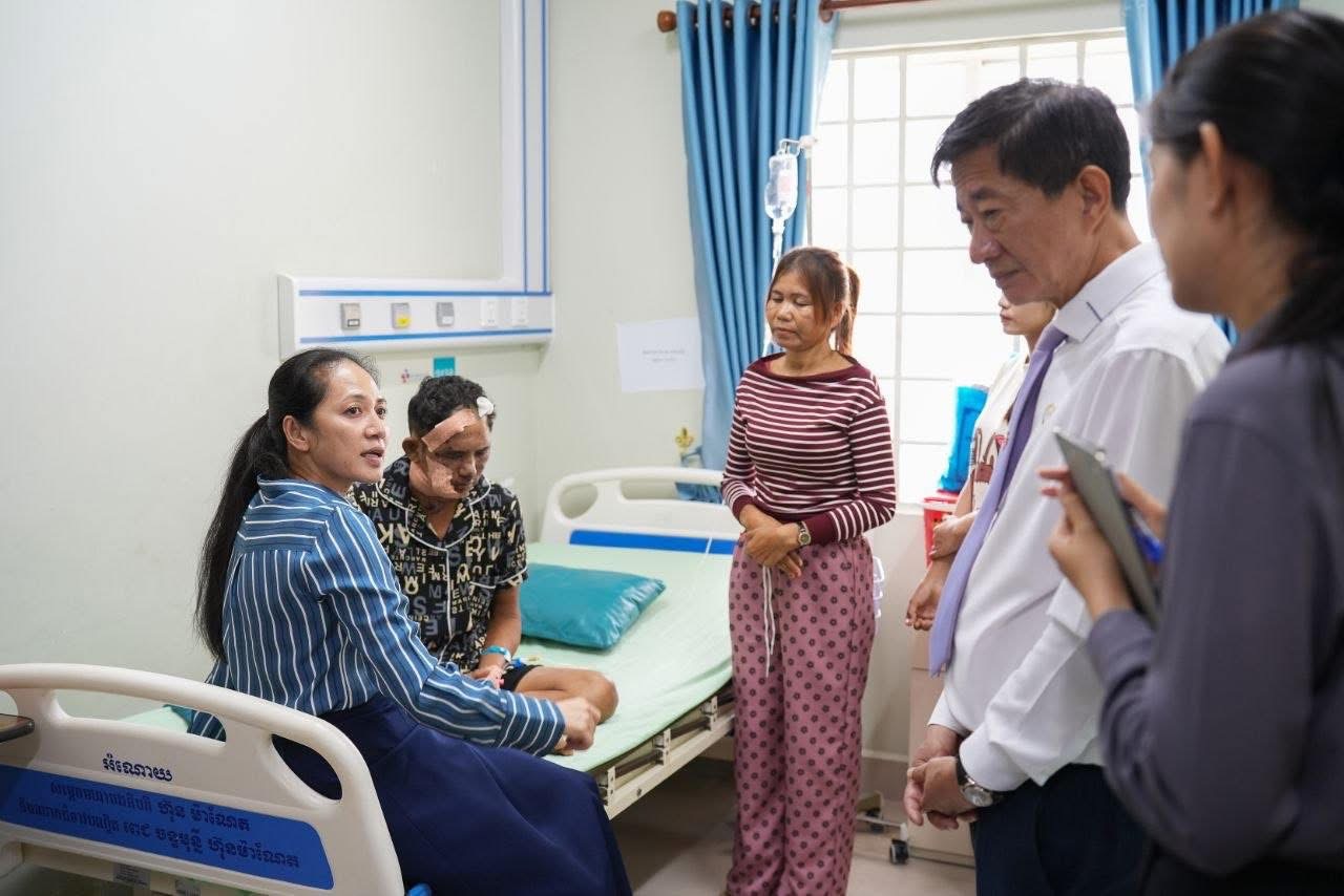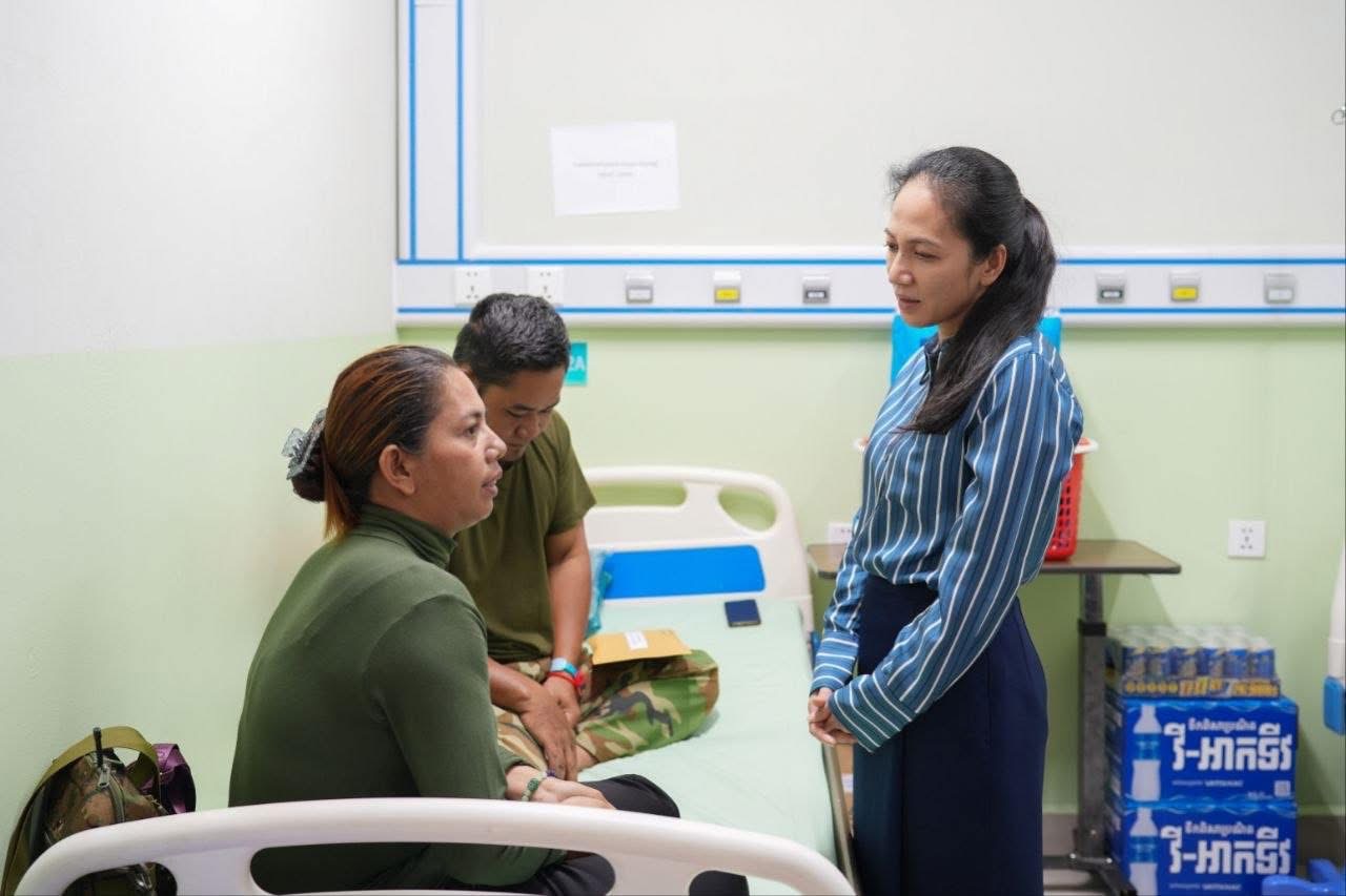លោកជំទាវបណ្ឌិត ពេជ ចន្ទមុន្នី ហ៊ុនម៉ាណែត អញ្ជើញសួរសុខទុក្ខវីរៈកងទ័ពដែលកំពុងសម្រាកព្យាបាលនៅមន្ទីរពេទ្យមិត្តភាពខ្មែរ-សូវៀត ក្រោយបានរងរបួស អំឡុងពេលបំពេញការងារ កាលពីថ្ងៃទី២៦ មីនា ២០២៦។