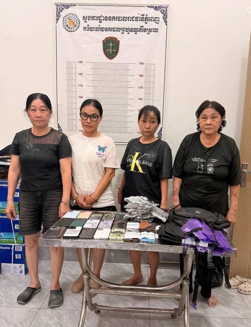 (ភ្នំពេញ)៖ ការិយាល័យព្រហ្មទណ្ឌកម្រិតស្រាល នៃស្នងការដ្ឋាននគរបាលរាជធានីភ្នំពេញ សហការជាមួយអធិការដ្ឋាននគរបាលខណ្ឌចំការមន បានឃាត់ខ្លួនស្ដ្រីជនជាតិវៀតណាម ចំនួន៤នាក់ ពាក់ព័ន្ធនឹងបទល្មើសអំពើលួច (លួចទូរស័ព្ទដៃ) នៅក្នុងកម្មវិធីនគរសង្រ្កាន ផ្លូវ១៥៥ សង្កាត់ទួលទំពូង១ ខណ្ឌចំការមន រាជធានីភ្នំពេញ កាលពីថ្ងៃទី១៣ ខែមេសា ឆ្នាំ២០២៦។