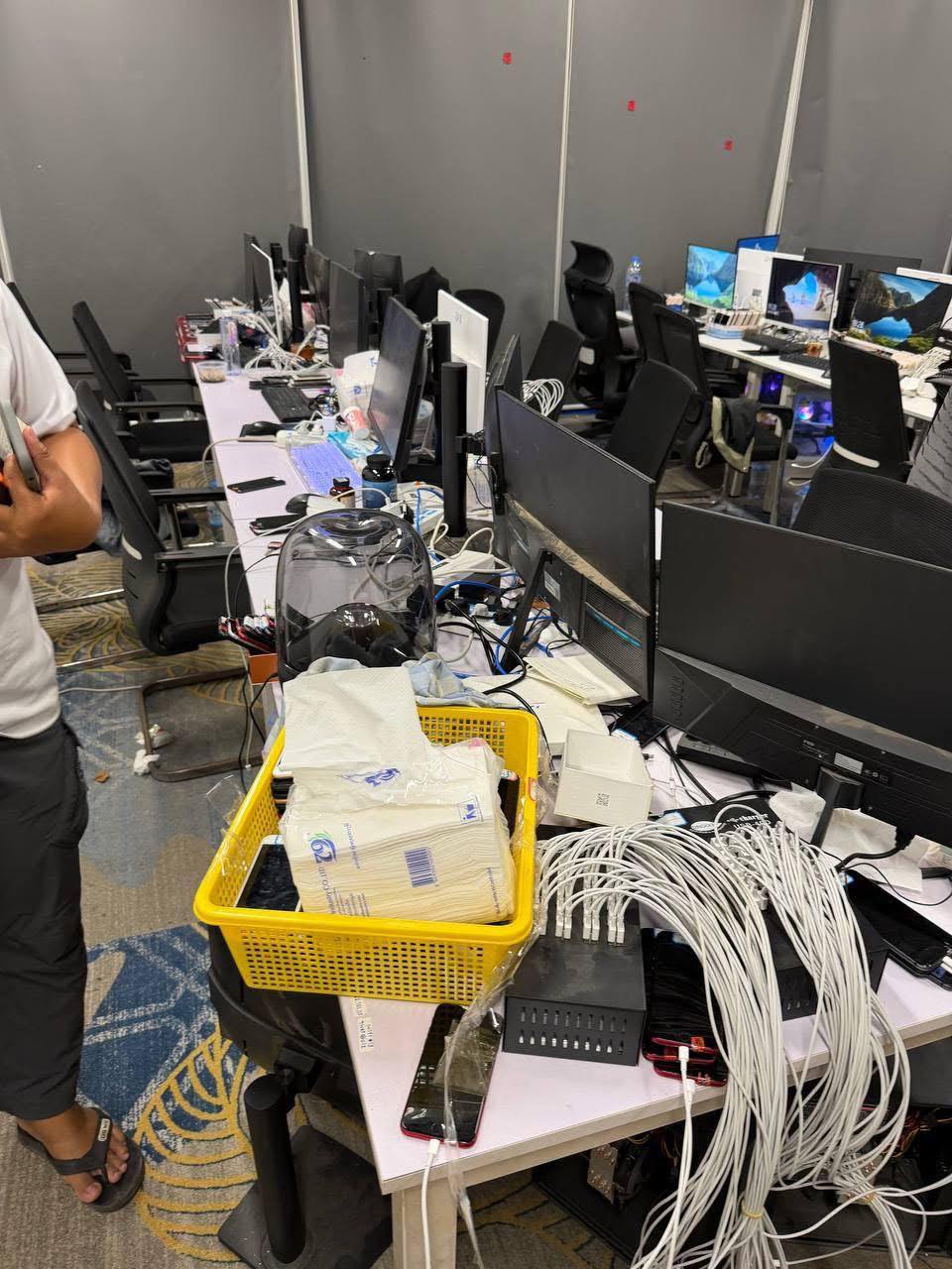 (ភ្នំពេញ)៖ដោយអនុវត្តយ៉ាងហ្មឺងម៉ាត់តាមអនុក្រឹត្យលេខ ០៣ អនក្រ .បក ចុះថ្ងៃទី០៥ ខែមករា ឆ្នាំ២០២៦ របស់រាជរដ្ឋាភិបាលកម្ពុជា ក្រុមការងារចម្រុះ ដឹកនាំដោយ ឯកឧត្តម ឃួង ស្រេង អភិបាល នៃគណ:អភិបាលរាជធានីភ្នំពេញ និងជាប្រធានគណៈបញ្ជាការឯកភាពរដ្ឋបាលរាជធានីភ្នំពេញ បានដឹកនាំគណៈបញ្ជាការឯកភាពរដ្ឋបាលខណ្ឌទាំង១៤ ធ្វើការត្រួតពិនិត្យតាមទីតាំងអាគារ ខុនដូរ អាផាតមិន បុរី ផ្ទះសំណាក់ និងសណ្ឋាគារមួយចំនួន ក្នុងគោលដៅប្រតិបត្តិការបោសសម្អាតទីតាំងសង្ស័យប្រព្រឹត្តបទល្មើសឆបោកតាមប្រព័ន្ធបច្ចេកវិទ្យា (ONLINE SCAMS) ក្នុងភូមិសាស្ត្ររាជធានី គិតចាប់ពីថ្ងៃទី០៣ ដល់ថ្ងៃទី១៨ ខែកុម្ភៈ ឆ្នាំ២០២៦ ទទួលបានលទ្ធផលដូចខាងក្រោម: