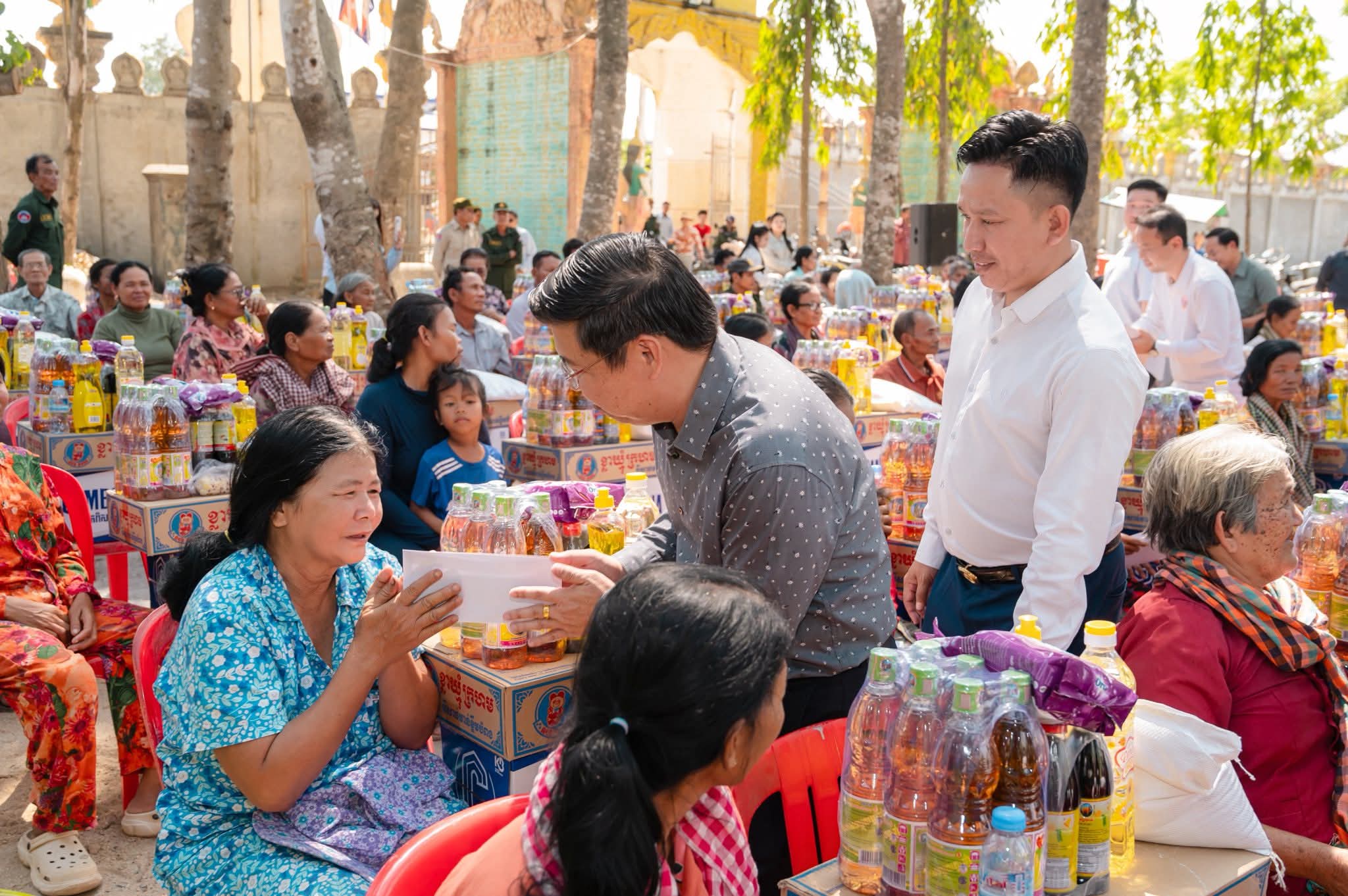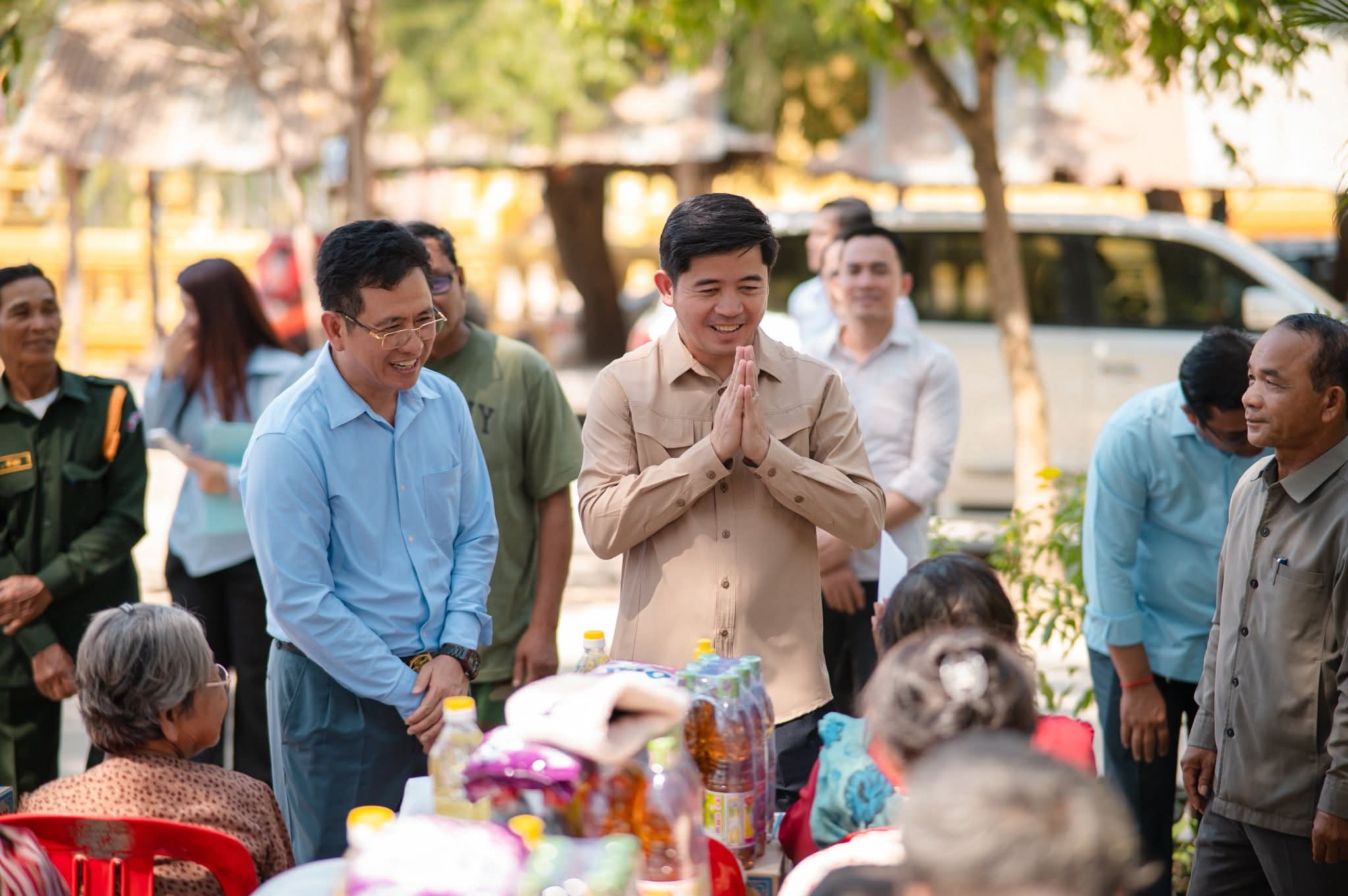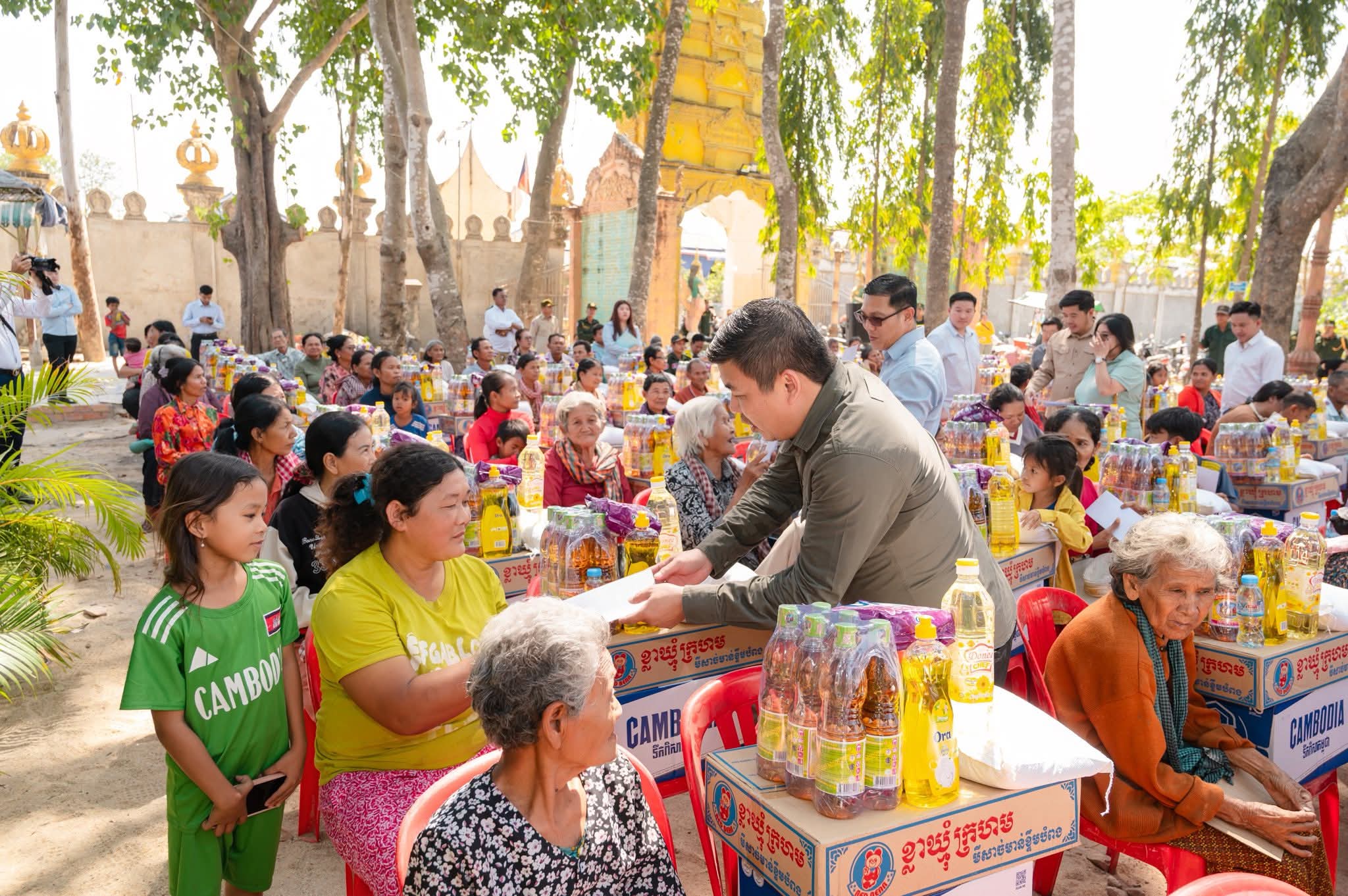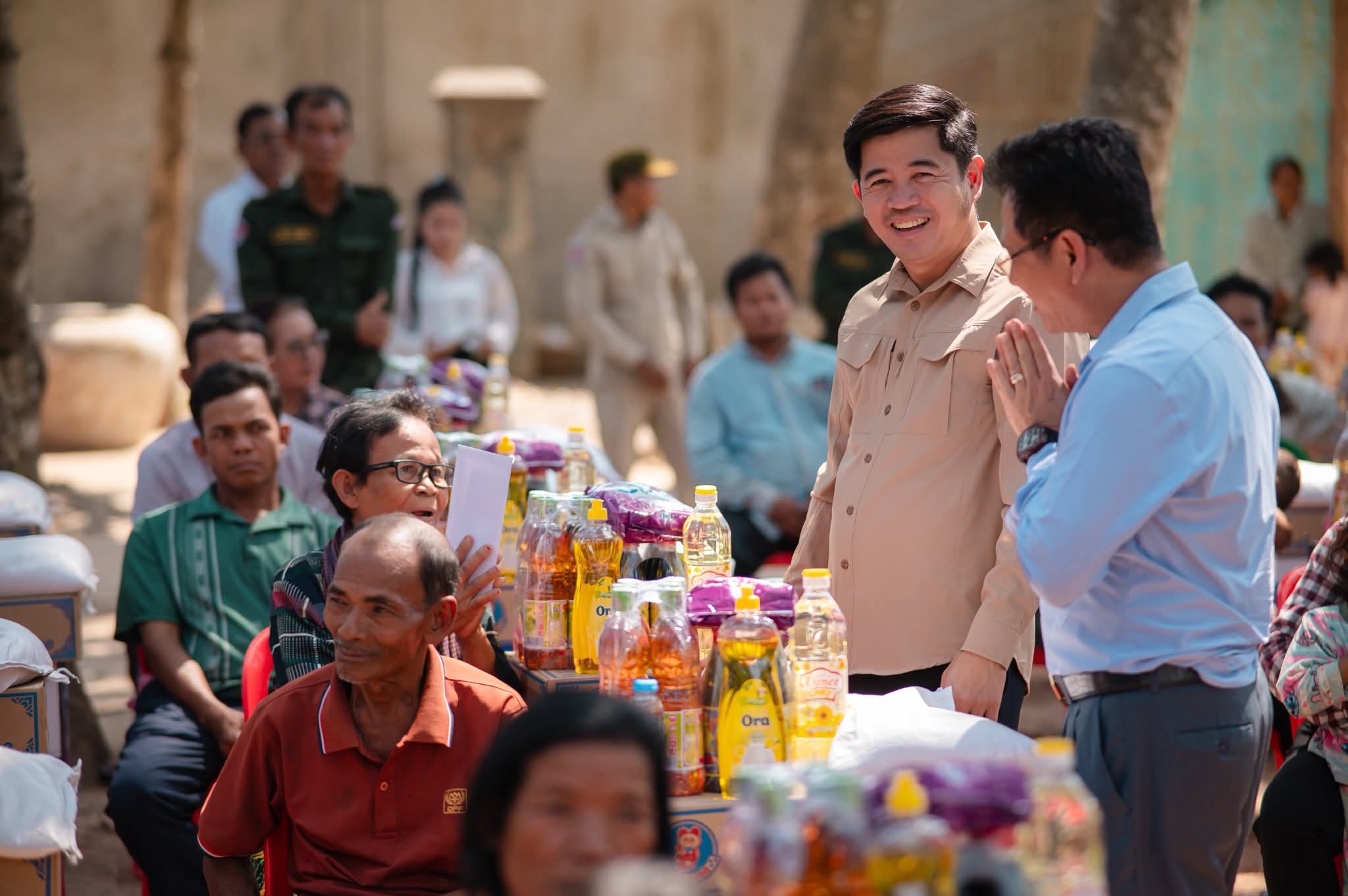 (តាកែវ)៖នារសៀល ថ្ងៃសុក្រ ទី២០ ខែកុម្ភៈ ឆ្នាំ២០២៦ ឯកឧត្តម ចេង ប៉េងហាប់ មេធាវីរាជរដ្ឋាភិបាល អនុប្រធានក្រុមការងាររាជរដ្ឋាភិបាលចុះមូលដ្ឋានស្រុកបាទី និងជាប្រធានក្រុមការងាររាជរដ្ឋាភិបាលចុះមូលដ្ឋានឃុំពត់សរ បានដឹកនាំក្រុមការងារចុះសួរសុខទុក្ខ និងប្រគល់អំណោយដែលទទួលបានពីសប្បុរសជន ជូនគ្រួសារវីរកងទ័ព និងប្រជាពលរដ្ឋមានជីវភាពខ្វះខាត ចំនួន ១៥០គ្រួសារ និងបានឧបត្ថម្ភអំពូលសូឡា ចំនួន ៧០ឈុត សម្រាប់បំពាក់តាមដងផ្លូវ ក្នុងមូលដ្ឋានឃុំពត់សរ ស្រុកបាទី ខេត្តតាកែវ។