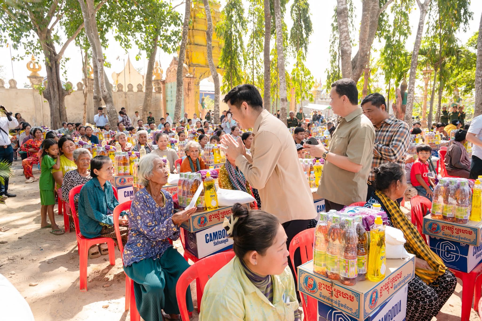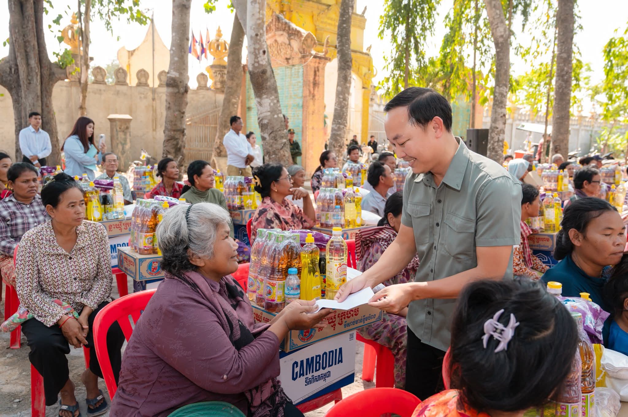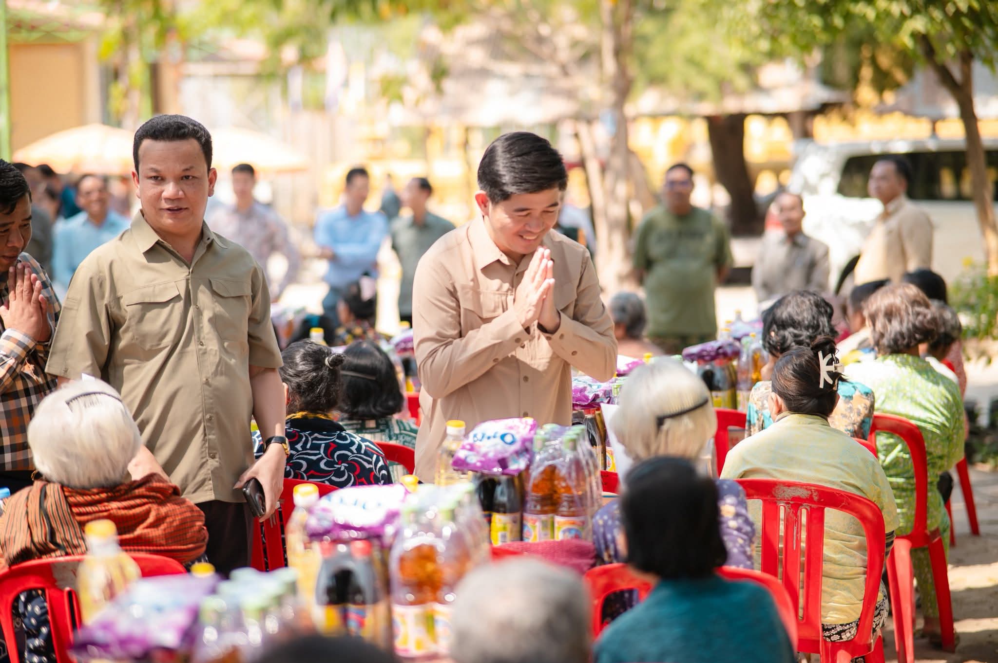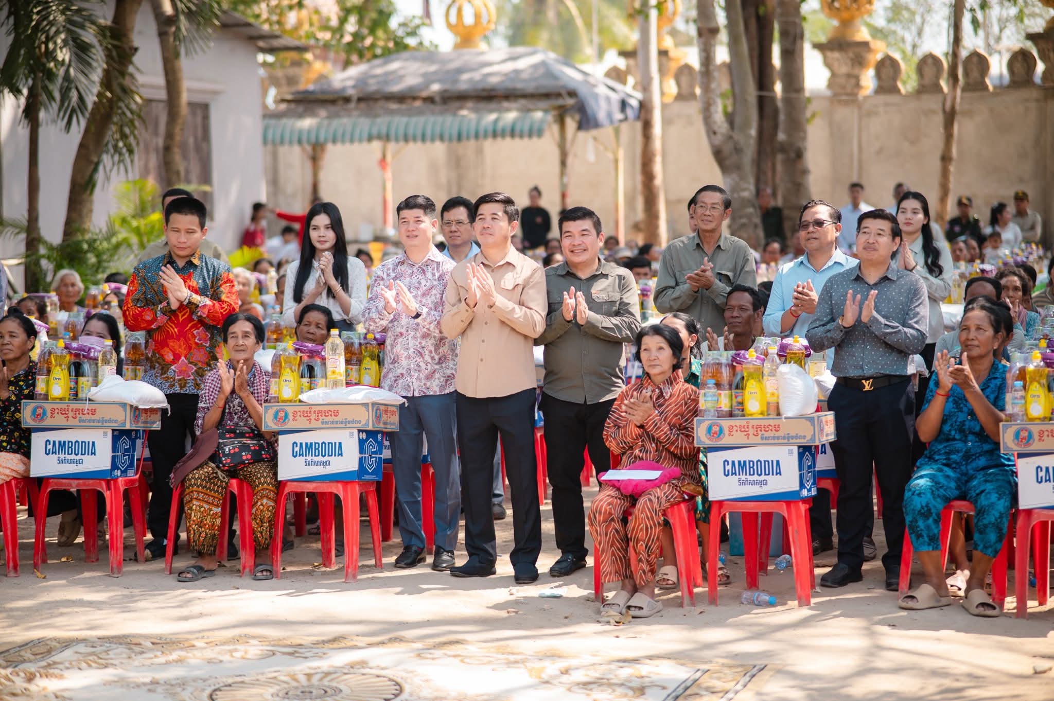 (តាកែវ)៖នារសៀល ថ្ងៃសុក្រ ទី២០ ខែកុម្ភៈ ឆ្នាំ២០២៦ ឯកឧត្តម ចេង ប៉េងហាប់ មេធាវីរាជរដ្ឋាភិបាល អនុប្រធានក្រុមការងាររាជរដ្ឋាភិបាលចុះមូលដ្ឋានស្រុកបាទី និងជាប្រធានក្រុមការងាររាជរដ្ឋាភិបាលចុះមូលដ្ឋានឃុំពត់សរ បានដឹកនាំក្រុមការងារចុះសួរសុខទុក្ខ និងប្រគល់អំណោយដែលទទួលបានពីសប្បុរសជន ជូនគ្រួសារវីរកងទ័ព និងប្រជាពលរដ្ឋមានជីវភាពខ្វះខាត ចំនួន ១៥០គ្រួសារ និងបានឧបត្ថម្ភអំពូលសូឡា ចំនួន ៧០ឈុត សម្រាប់បំពាក់តាមដងផ្លូវ ក្នុងមូលដ្ឋានឃុំពត់សរ ស្រុកបាទី ខេត្តតាកែវ។