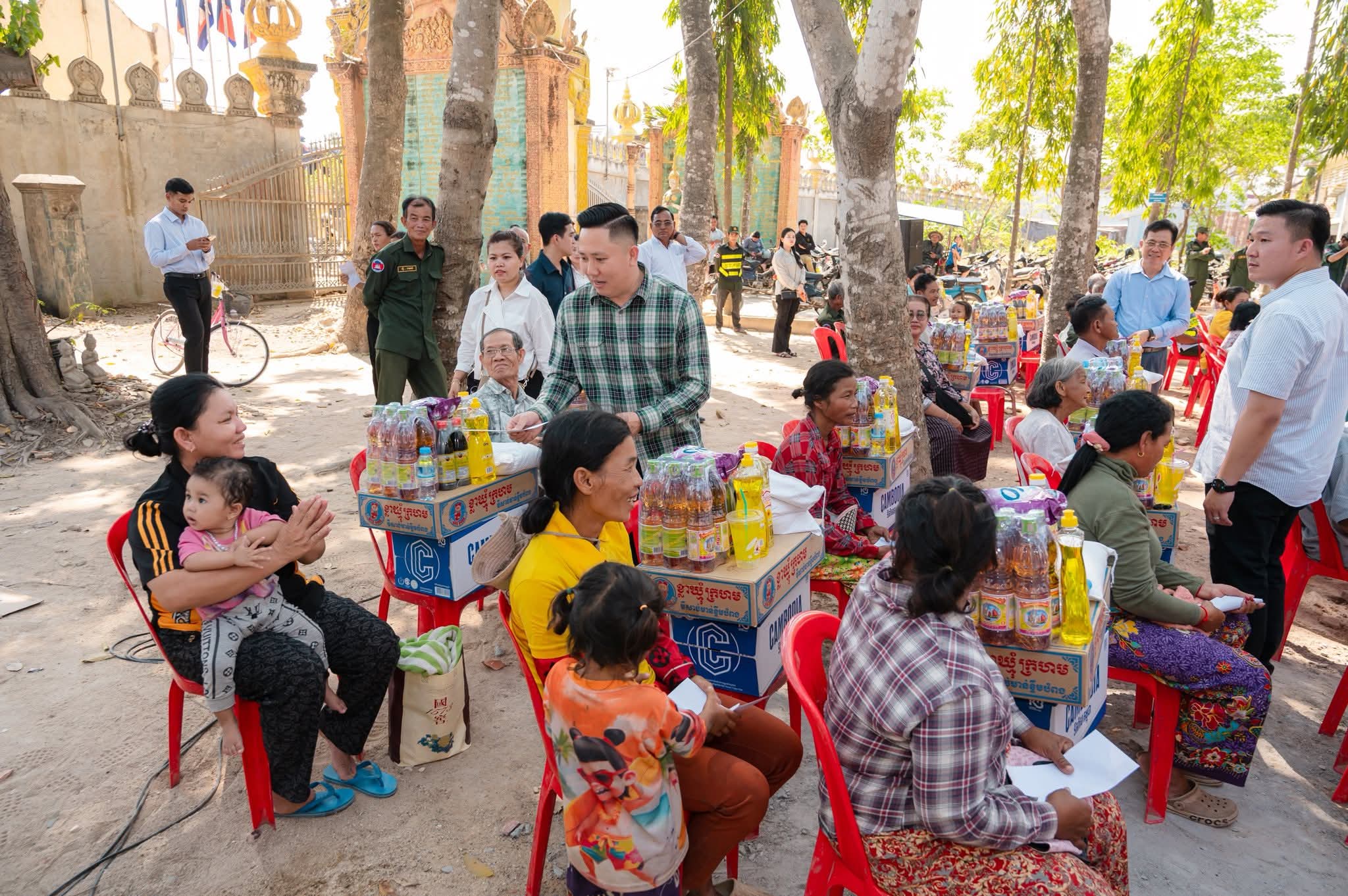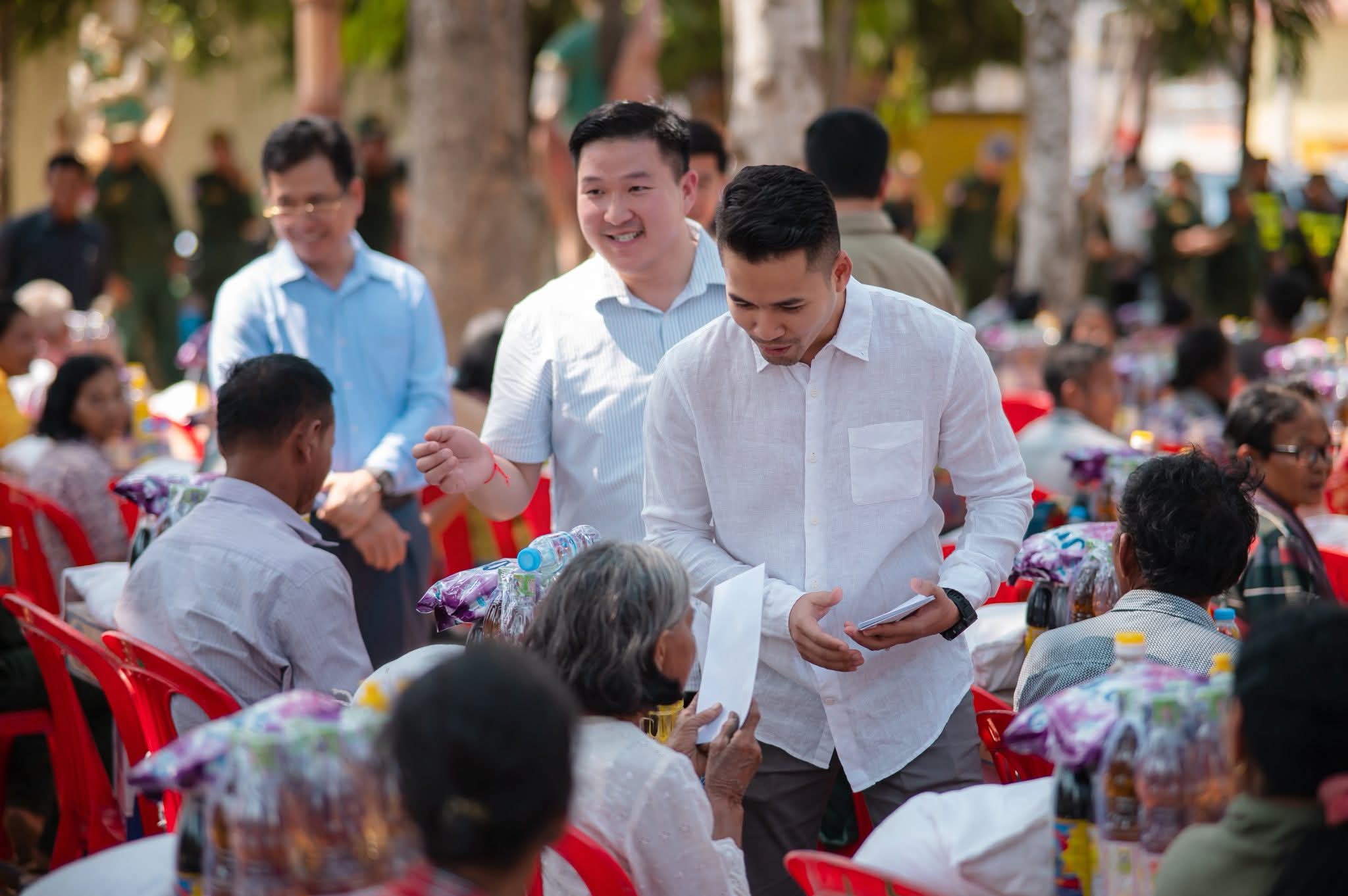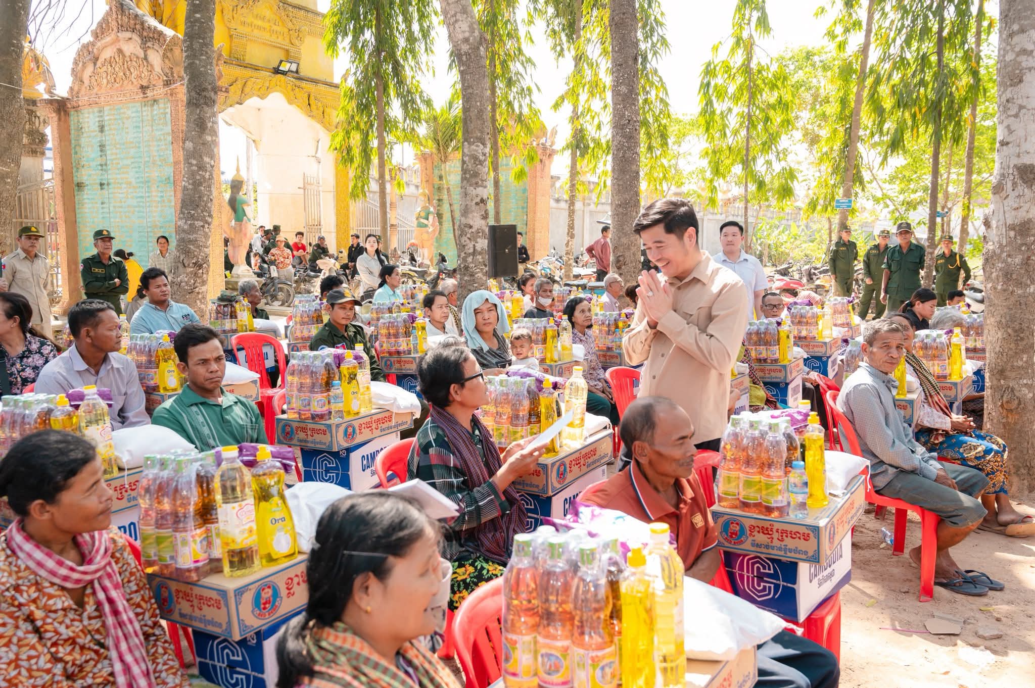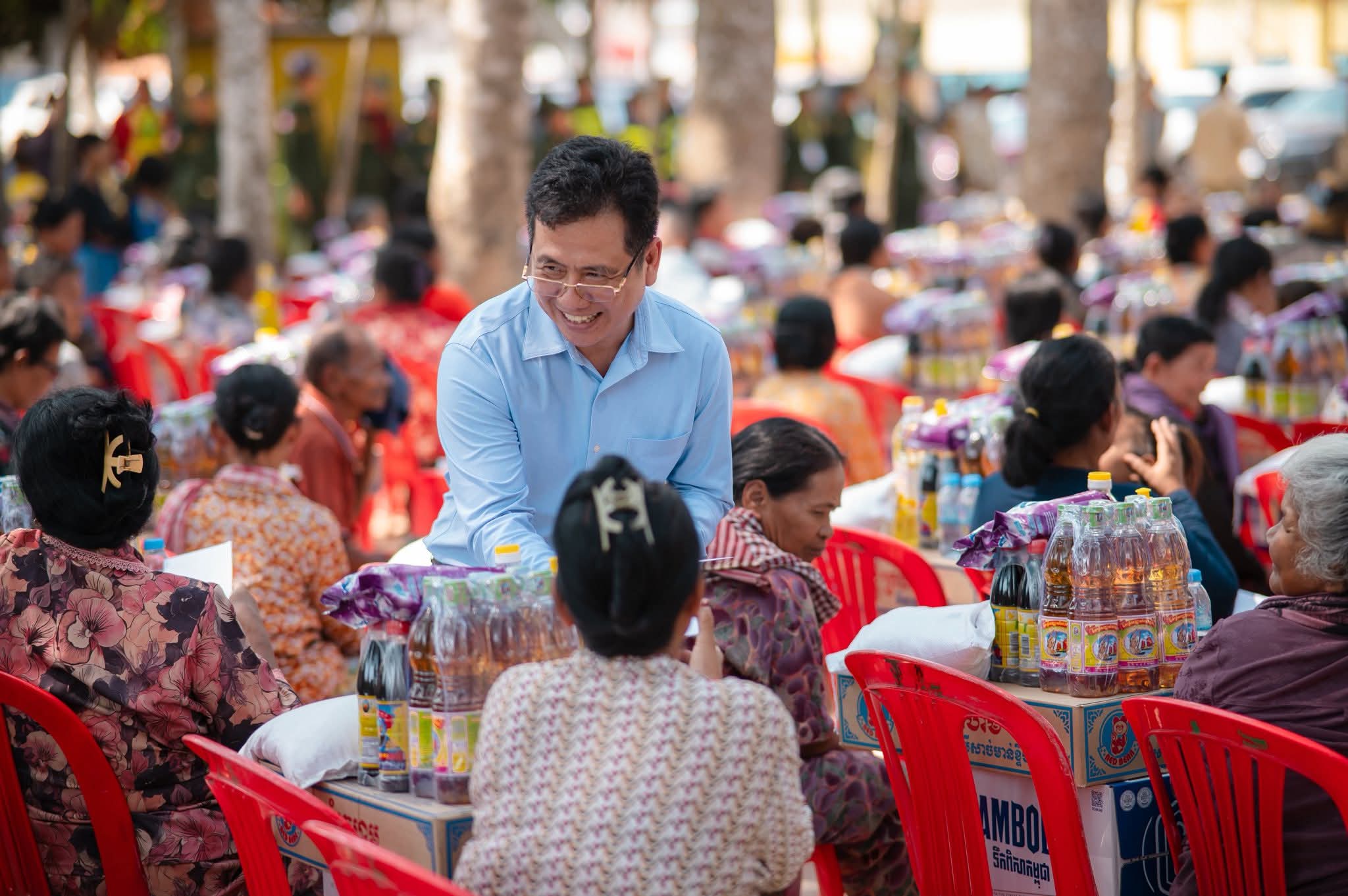 (តាកែវ)៖នារសៀល ថ្ងៃសុក្រ ទី២០ ខែកុម្ភៈ ឆ្នាំ២០២៦ ឯកឧត្តម ចេង ប៉េងហាប់ មេធាវីរាជរដ្ឋាភិបាល អនុប្រធានក្រុមការងាររាជរដ្ឋាភិបាលចុះមូលដ្ឋានស្រុកបាទី និងជាប្រធានក្រុមការងាររាជរដ្ឋាភិបាលចុះមូលដ្ឋានឃុំពត់សរ បានដឹកនាំក្រុមការងារចុះសួរសុខទុក្ខ និងប្រគល់អំណោយដែលទទួលបានពីសប្បុរសជន ជូនគ្រួសារវីរកងទ័ព និងប្រជាពលរដ្ឋមានជីវភាពខ្វះខាត ចំនួន ១៥០គ្រួសារ និងបានឧបត្ថម្ភអំពូលសូឡា ចំនួន ៧០ឈុត សម្រាប់បំពាក់តាមដងផ្លូវ ក្នុងមូលដ្ឋានឃុំពត់សរ ស្រុកបាទី ខេត្តតាកែវ។