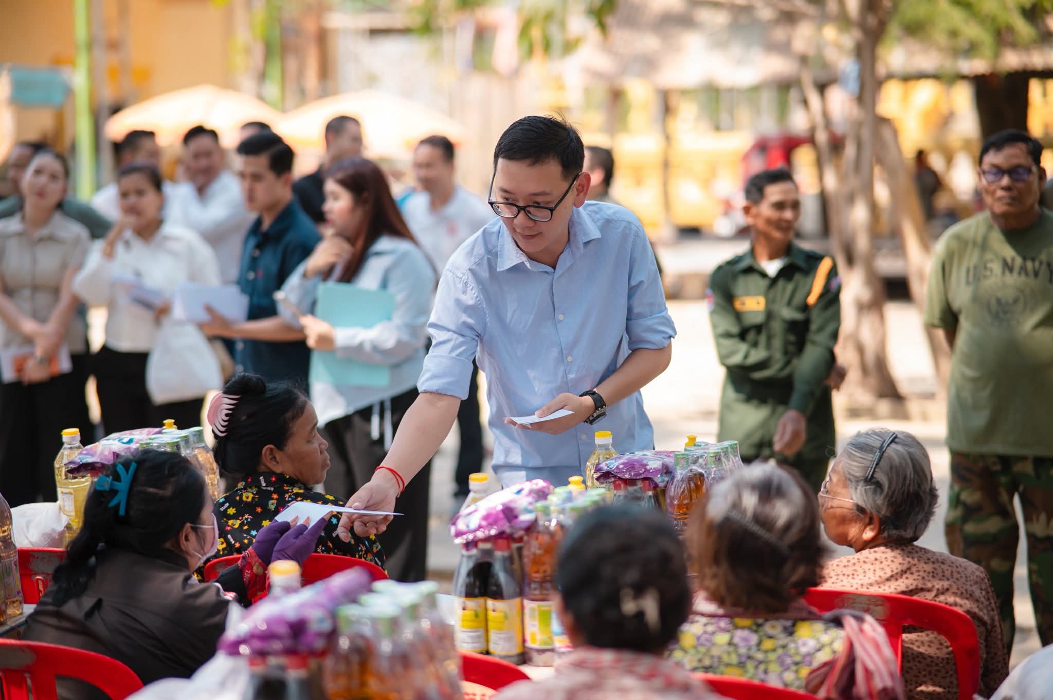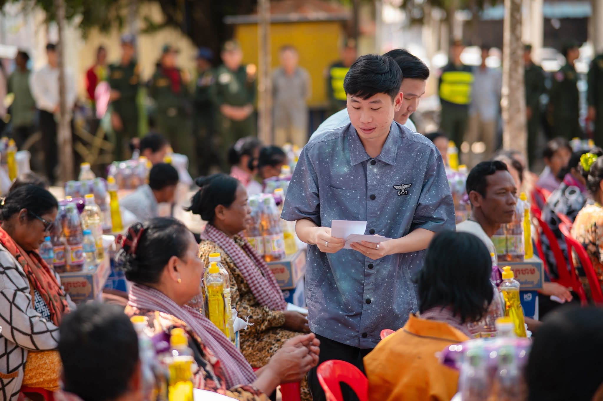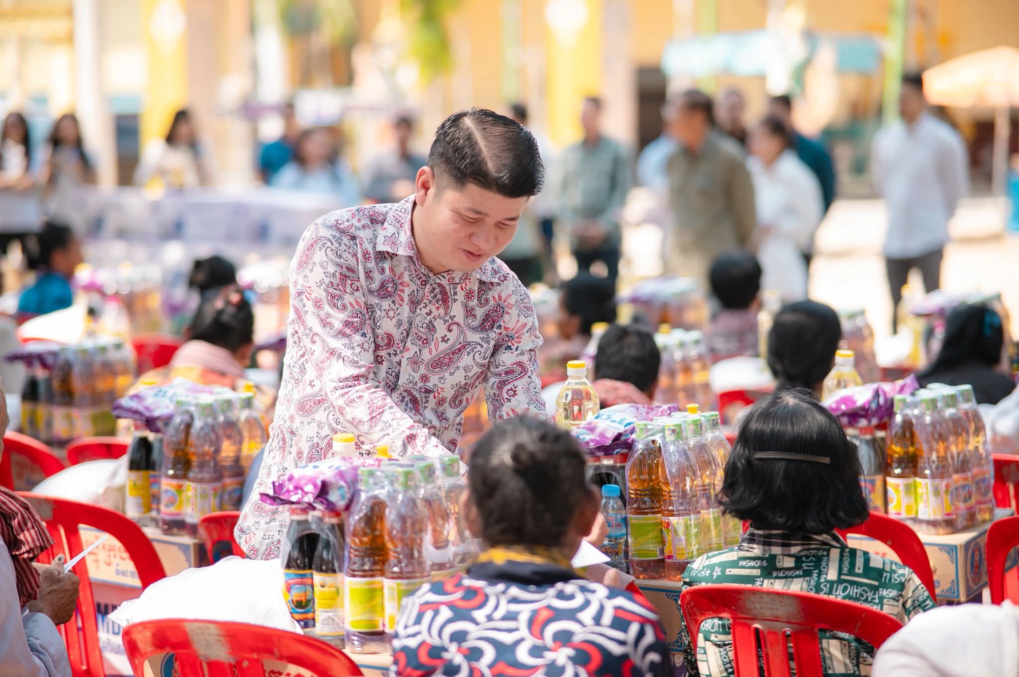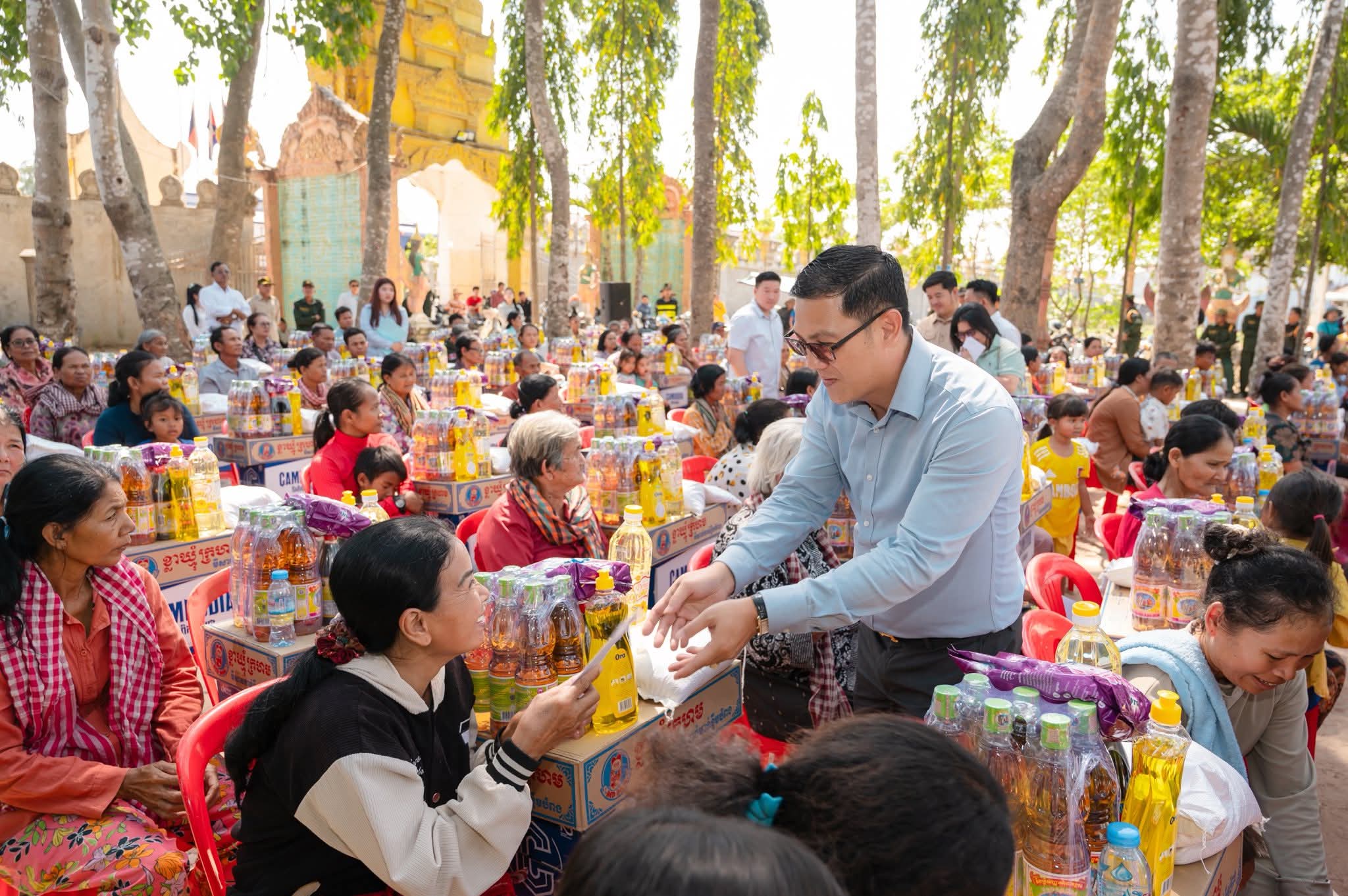 (តាកែវ)៖នារសៀល ថ្ងៃសុក្រ ទី២០ ខែកុម្ភៈ ឆ្នាំ២០២៦ ឯកឧត្តម ចេង ប៉េងហាប់ មេធាវីរាជរដ្ឋាភិបាល អនុប្រធានក្រុមការងាររាជរដ្ឋាភិបាលចុះមូលដ្ឋានស្រុកបាទី និងជាប្រធានក្រុមការងាររាជរដ្ឋាភិបាលចុះមូលដ្ឋានឃុំពត់សរ បានដឹកនាំក្រុមការងារចុះសួរសុខទុក្ខ និងប្រគល់អំណោយដែលទទួលបានពីសប្បុរសជន ជូនគ្រួសារវីរកងទ័ព និងប្រជាពលរដ្ឋមានជីវភាពខ្វះខាត ចំនួន ១៥០គ្រួសារ និងបានឧបត្ថម្ភអំពូលសូឡា ចំនួន ៧០ឈុត សម្រាប់បំពាក់តាមដងផ្លូវ ក្នុងមូលដ្ឋានឃុំពត់សរ ស្រុកបាទី ខេត្តតាកែវ។