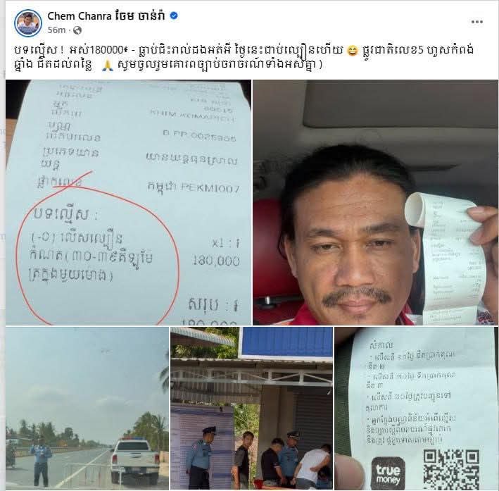 នៅថ្ងៃនេះនាយកំប្លែង ពាក់មី បានបង្ហោះនគរបាលចរាចរណ៍ខេត្តកំពង់ឆ្នាំង ចាប់ផាកពិន័យលោក ដោយសារបើកលើសល្បឿនកំណត់ ដោយត្រូវបង់ចំនួន ១៨ម៉ឺនរៀល។