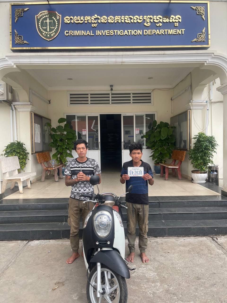 នាយកដ្ឋាននគរបាលព្រហ្មទណ្ឌ ឃាត់ខ្លួនជនសង្ស័យចំនួន២នាក់ ដែលជាមុខសញ្ញាលួចកាច់កម៉ូតូ យ៉ាងសកម្មក្នុងភូមិសាស្រ្តខរាជធានីភ្នំពេញ